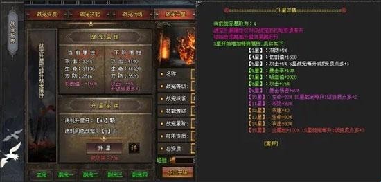 3、升星消耗同色战宠,散人或微氪玩家,主培养绿色战宠,后期培养紫色战宠。