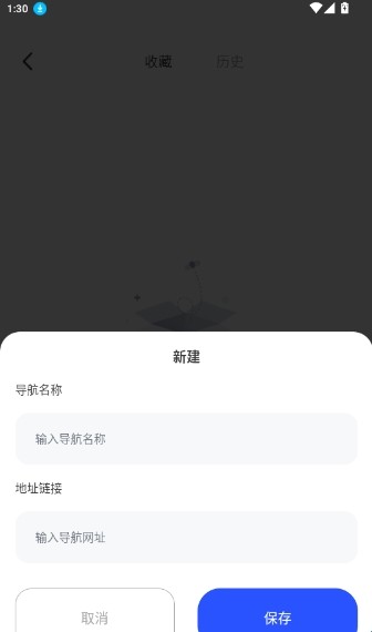 4.输入导航名称、地址链接点击“保存”即可完成网址新建操作