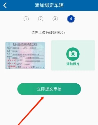 5、按照图示进行上传行驶证照片,选择“立即提交审核”,