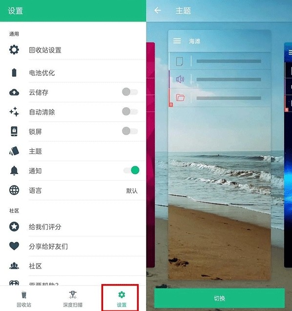 6、右下角的「设置」界面则提供了不少的个人相关设置,包括回收站设置、电池优化、云存储、自动清除、锁屏、主题设置等等,感兴趣的小伙伴,可以去自行体验。