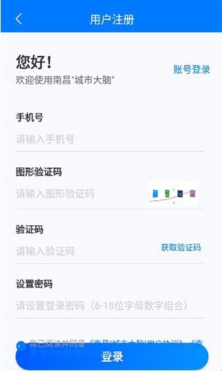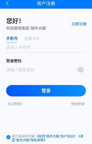 1、在本站下载打开南昌城市大脑App,输入手机号/社保卡进行登录;