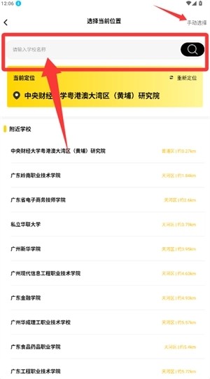 1、进入地址选取页面,可搜索或手动挑选确定学校位置。