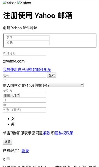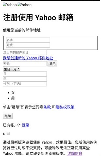 3、雅虎注册的时候需要科学上网才能够使用,目前国内是已经关掉了雅虎的注册渠道。