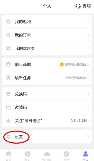 3、在个人界面中,用户可查看历史练习数据、训练记录等核心信息,将页面滑动至最底部,找到并点击【设置】选项,进入软件整体设置页面。