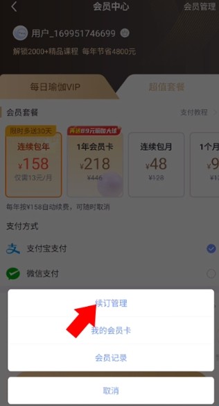 4、在会员管理页面中找到续订管理选项,点击进入后按照页面提示操作,即可完成自动续订的取消流程,关闭自动扣费服务。