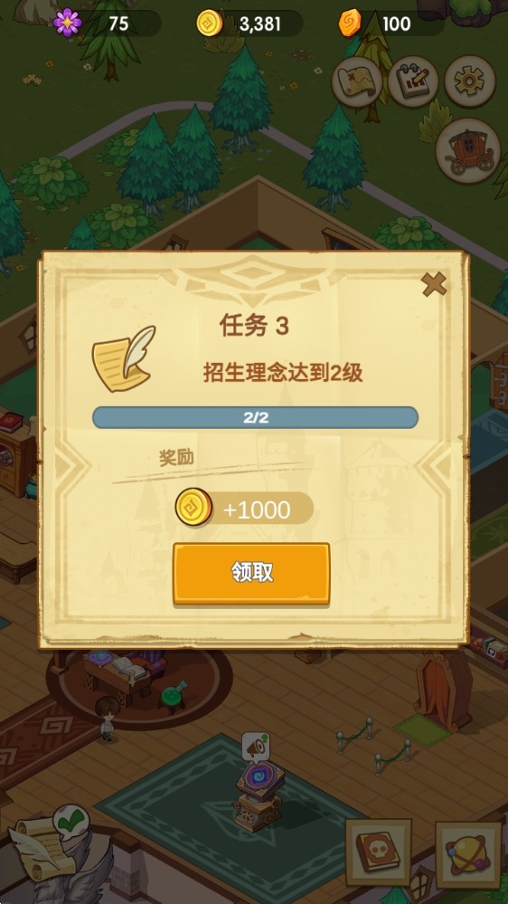 2、完成指定任务来获得额外的惊喜奖励,大量的资源可以助你更快发展,扩大学院的规模。