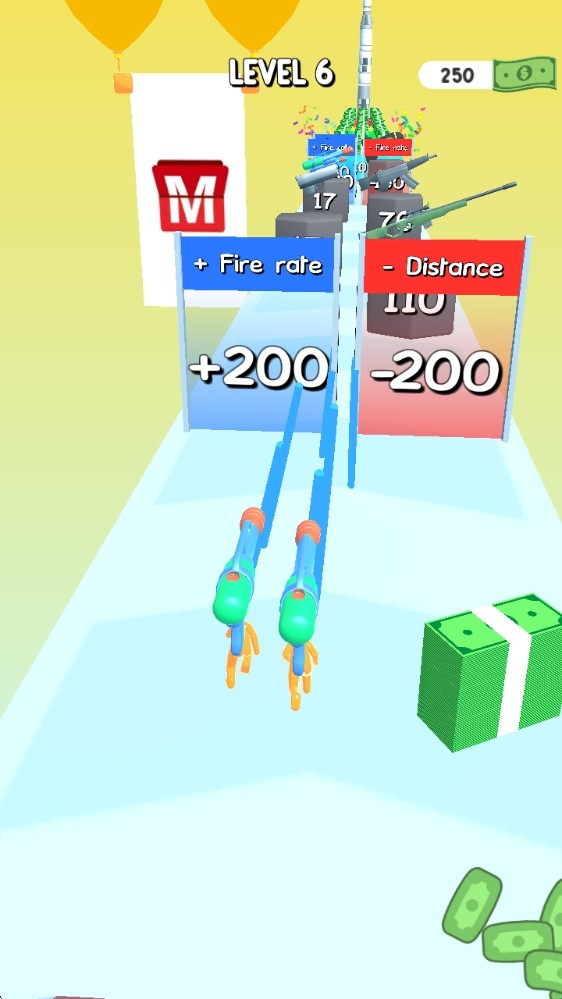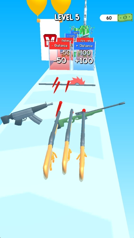 枪神冲冲冲又叫做Gun Head Run,这是一款妙趣横生的休闲闯关类游戏。游戏整体操作简单,搭配上卡通有趣的画风、轻松愉快的音乐,能让每位玩家感到解压的玩法体验。在这里玩家只需要左右滑动,就能获得各式各样的加成,玩家需要用心安排,这样才能顺利战胜敌人。