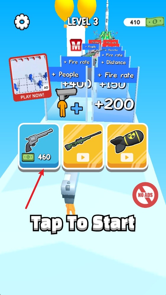 3、在前进的过程中,我们可以拾取各种BUFF,以此来提升自己的人数、威力等,让你能够走得更远。