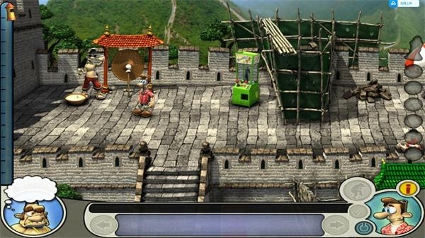 1、到右上拿起cannon-ball(古炮炮弹)使用于左下的melons(西瓜);场景22、到左上的tool belt(工具摊)拿起spanner(扳手)使用于左下的collapsible bike(可折叠自行车);