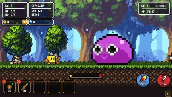 勇往直前是一款有趣的像素闯关类游戏,在游戏里你需要挑战游戏中的所有关卡和boss,和很多的怪物进行战斗,从而获得金币去购买武器装备,不断的提升自己的属性和装备,为后面打boss带来良好的基础,游戏玩法简单又趣味,喜欢的玩家快来下载吧!