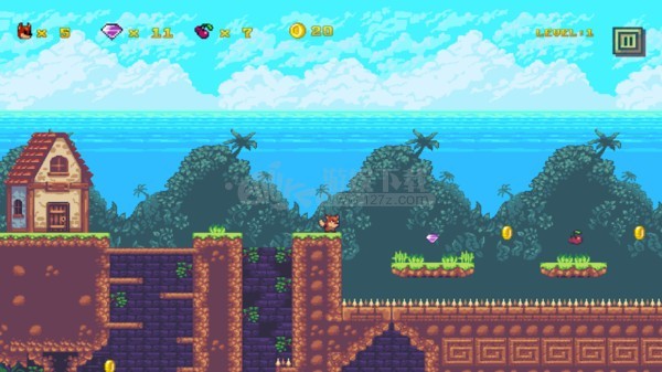 像素狐狸大冒险,一款充满挑战的像素风冒险游戏。玩家将带领小狐狸穿越重重障碍,收集钻石、金币和樱桃,智斗敌人,寻找回家之路。快来体验这款刺激的冒险之旅,帮助小狐狸安全回家!