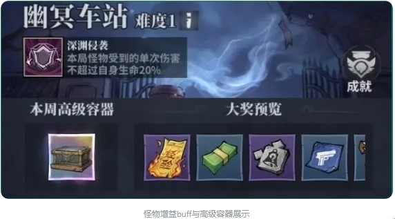 幽冥车站各个难度会每周会独立刷新【怪物增益buff】与【本周高级容器】。*具体刷新规则可关注游戏内玩法说明