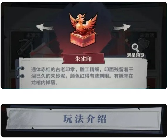 不同的传说藏品,只会在特定的高级容器中概率掉落.比如:朱雀印会在龙棺内概率掉落。大家在进入关卡前,记得先查看本周高级容器是哪一个哦!