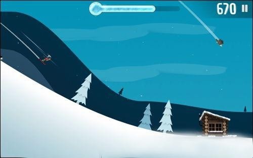 超强的速度感是本作的最大特色,游戏中有很多高速下落的坡道,玩家会一直感受那种速度的快感。游戏的画面虽不复杂但很精致,场景并非一成不变,而是会随着玩家滑雪距离的增加不断变化。