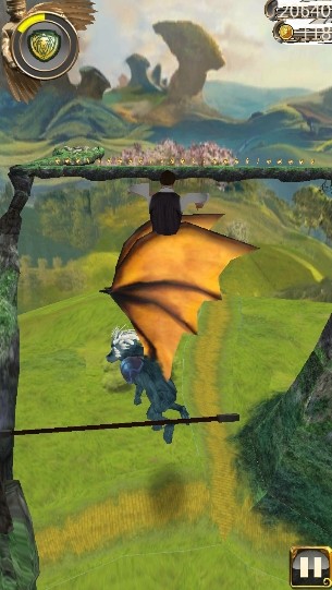 点击向前滑动就能够控制角色跳跃操作,该操作可以进入滑索状态,同时玩家重力感应左右倾斜手机来控制角色左右移动操作,收集各种钱币和躲避各种狭窄的道路