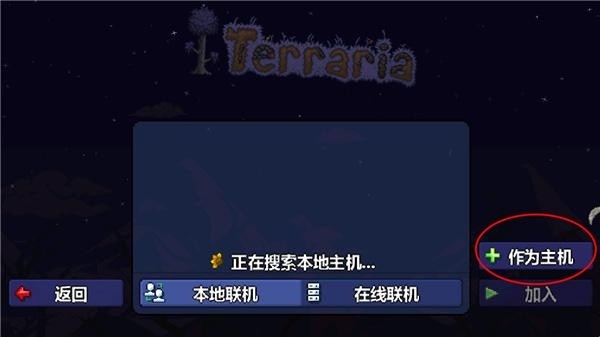 4、在本地联机中,玩家们首先点击“作为主机”(玩家需要在同一局域网内);