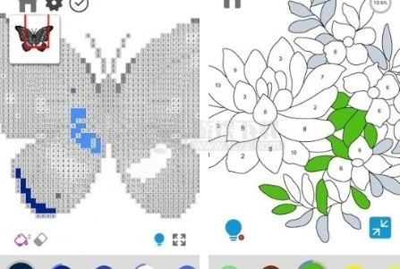 3、像素涂:像素风的图片,每个像素都有对应的颜色和数字提示,另有颜料桶等一键涂色多区域。涂色完成后的图片都可以保存或分享。