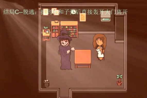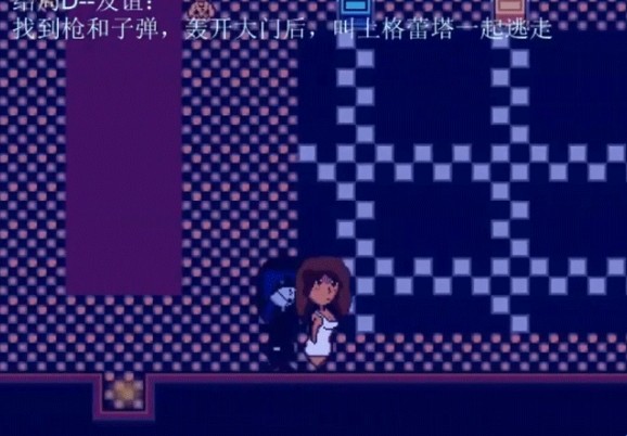 结局D:拿到枪和子弹后,直接打开全是锁的大门后,前往地牢去格蕾塔房间,将其带走;