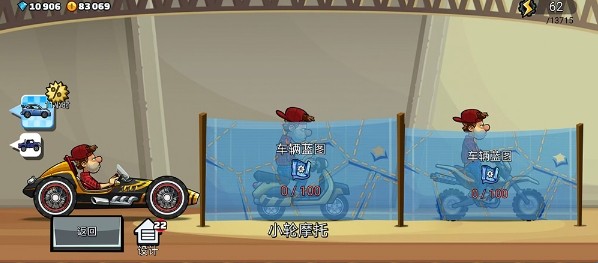第一步:跑田园,一方面练技术,一方面赚金币,吉普一级都不要升,升级没意义,赚来的金币用来解锁越野摩托车