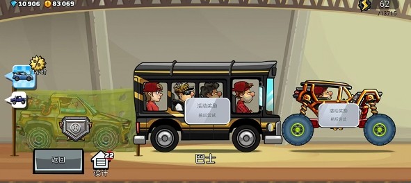 第三步:越野升到满级,升到满级后你会发现赚钱速度是非常快的,在月球上几分钟或者十几分钟左右,通常能挣8万到15万金币,如果买喷子合理利用,一局挣二三十万金币很轻松。这时候钱存着,用来买老爷车,这是赚钱速度已经很猛了