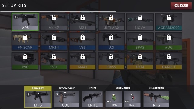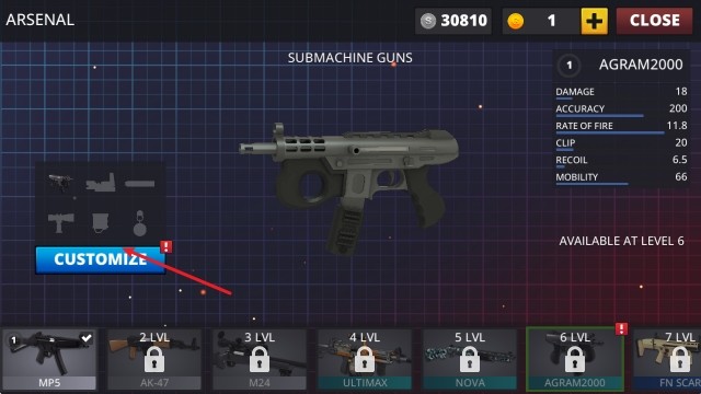 2、被敌人击杀后会在基地复活,然后点击下方商店,我们还可以购买各种全新的武器。
