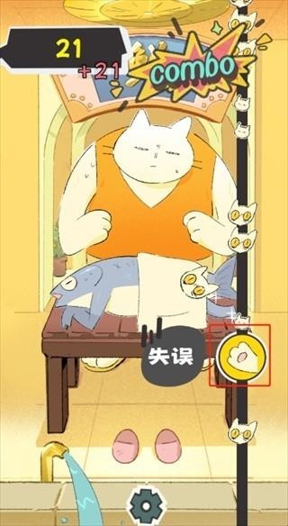 2、游戏右侧有个猫爪玩家需要用猫爪拍击掉落下来的猫头。