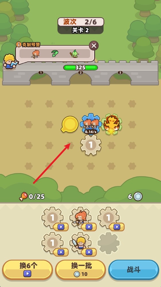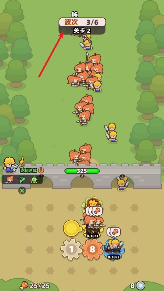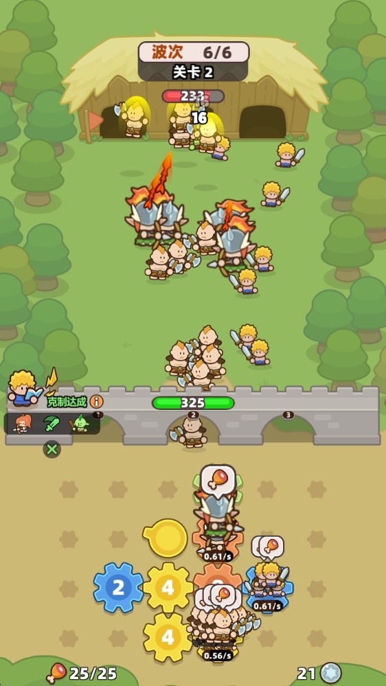 3、战斗开始后,根据齿轮的转动来慢慢生成士兵,但是有人口上限哦。