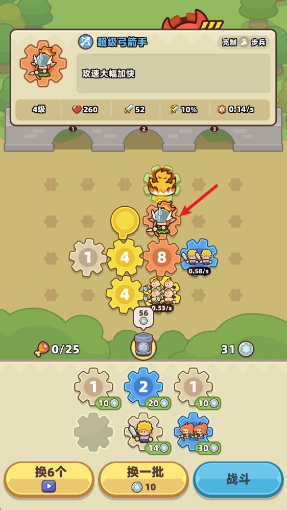 4、同一兵种合成到最高等级后,就会变成只占一个人口的超强英雄。