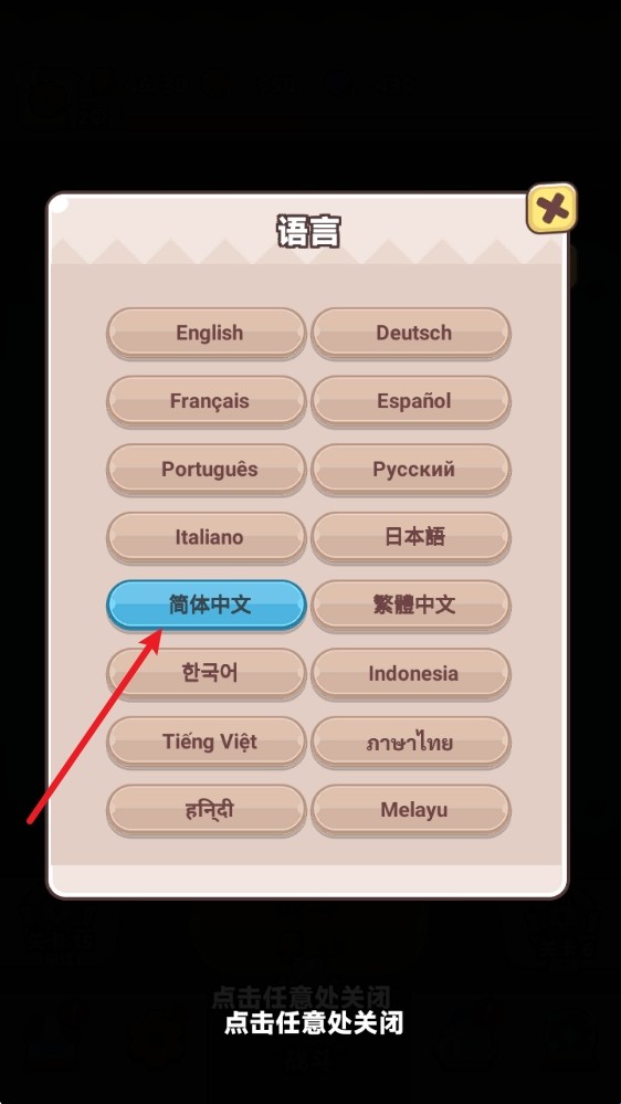 3、找到简体中文后点击即可切换。