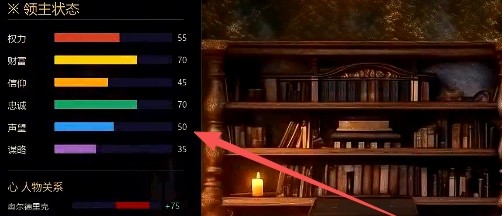 2、玩家可以在此查看主角的各项数值以及人际关系