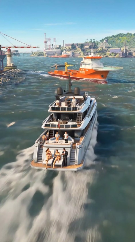 3、可以通过完成任务来解锁全新的游轮,看到海滨城市中繁华的景象。