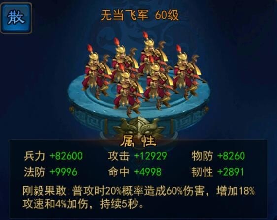 其次,不少部曲兵种,例如无当飞军、突豹骑、元戎弩兵等都能够为统帅的武将提供攻速支持。