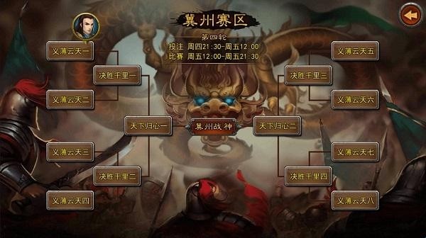 同时,每组32人进行四人一组的积分淘汰赛,每轮积分最高的两人晋级。四轮复赛后,每组诞生战神强者2人,共计16人进入决赛阶段。