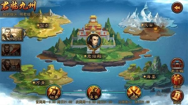 游戏以“国”为阵营,国王和官位由玩家公平竞技夺取,国王可召兵攻城;同时内置主城建设,包括征收资源、招募将领、科技发展等全套经济体制,带给你从上到下从内到外的君王体验,助您完成统一天下的宏图霸业!