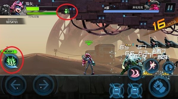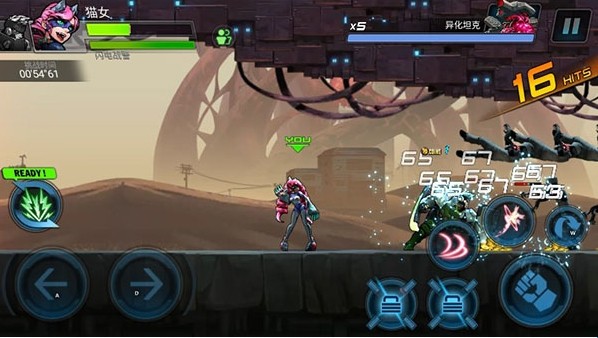 屏幕左边是控制人物左右移动,右边为技能、攻击、以及跳跃,击败所有敌人即可通关。