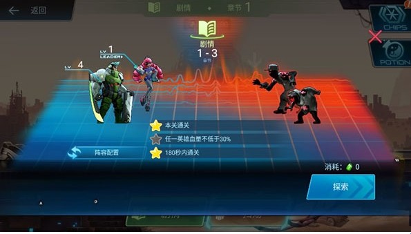 3、多维度角色养成:英雄系统支持技能树深度培养,例如火焰侠可选择“火焰掌控”(提升技能伤害)或“余烬复苏”(攻击回复生命值)分支。装备系统包含武器强化、芯片组装(如增加暴击率、缩短技能冷却)等玩法,玩家可通过副本掉落或活动奖励获取稀有材料。