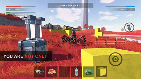 一款内容玩法比较新奇的冒险生存游戏,在一个风景优美的未知星球上,玩家要收集资源,资源的获取方式比较多,可以通过设计巨石的方式得到稀有元素物品,可以直接拾取,星球上的资源非常的多,根据要求收集完成之后,建造生存基地,创造一切生存的条件,修复好飞船,逃离这未知的星球回归到正常生活。