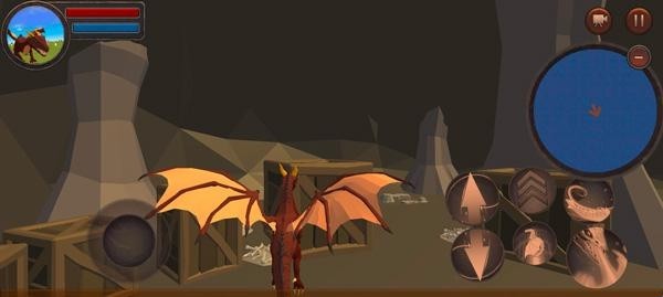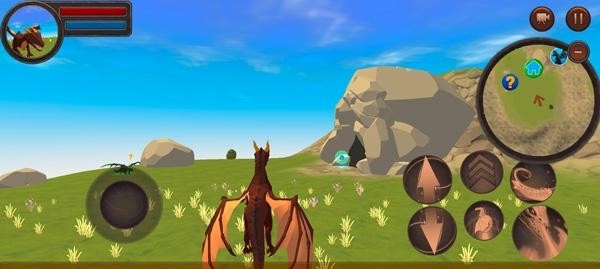 3、进入这个世界内,左下角可以控制龙自由移动,右下角是部分技能按钮,近战、远程、加速、以及飞翔等,加速需要搭配左下角一起使用,龙会更快地移动。