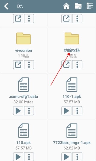 4、使用鼠标导航至D盘,找到名为“约翰农场”文件夹,然后打开并启动“JohansFarm.Exe”会黑屏一段时间,请耐心等待;