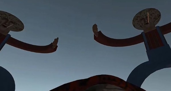 2、如果你靠近约翰,他就会突然跳到你脸上并将你绑架到一个神秘空间,不断唱着“挖掘机里腌萝卜咿呀咿呀哟”