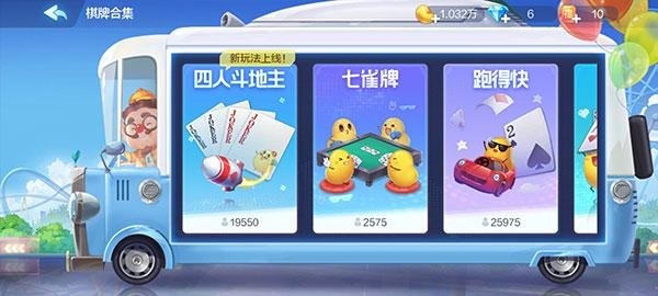 这个区域属于一个趣味玩法,包括了四人斗地主、七雀牌、跑得快、自选牌、换三张等等,为了让游戏变得不在单一。
