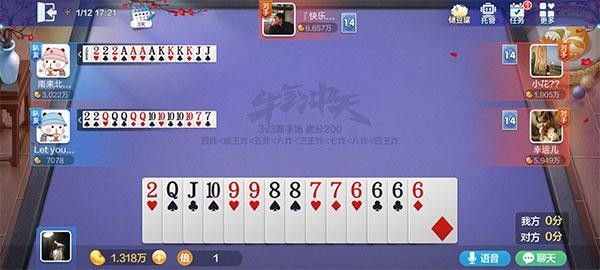 3、玩法很简单,你在玩的过程中,如果你手中的牌很大的话,队友又在你后面的话,适当可以先放队友先走,大牌留给压住对手,这样才能完成整个游戏对决。