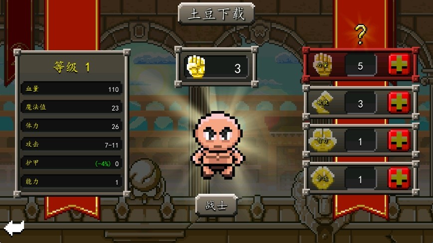 角斗士崛起,这是一款采用了经典回合制元素的肉鸽游戏,而玩家将化身为一位角斗士在竞技场内挑战其他对手。游戏内共设有三种职业角色,每一个职业都有专属技能,战斗界面内有近战、防御、体力数值显示,攻击过程中还需要注意体力值,否则就会被其他人击败哦!必要时拾取药品来帮助你恢复,感兴趣的小伙伴们快来试试吧!