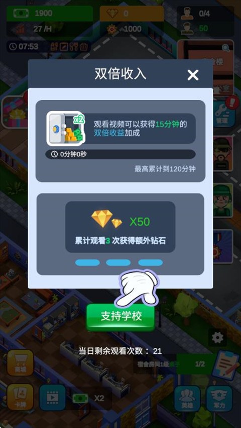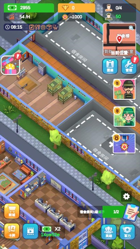 军校大亨游戏画面卡通高清,游戏流程操作简单,适合所有玩家游玩,玩家在游戏中需要建立一所军校,游戏中有各种各样的训练场地可以选择升级,强化学生的体魄。