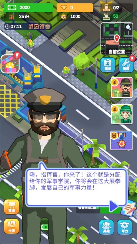 军校大亨(Idle Military School - Tycoon Games)是一款卡通高清风格的军校模拟经营手游,游戏画面卡通高清,操作简单,适合所有玩家游玩,玩家在游戏中需要建立一所军校,目标是将这所军校建设成一流的军校,玩家需要不但招收学员,升级军事课堂,培养军事人才,游戏中有各种各样的训练场地可以选择升级,强化学生的体魄,还可以升级生活设施来创造优质的生活,训练完毕后需要出征去战胜强大
