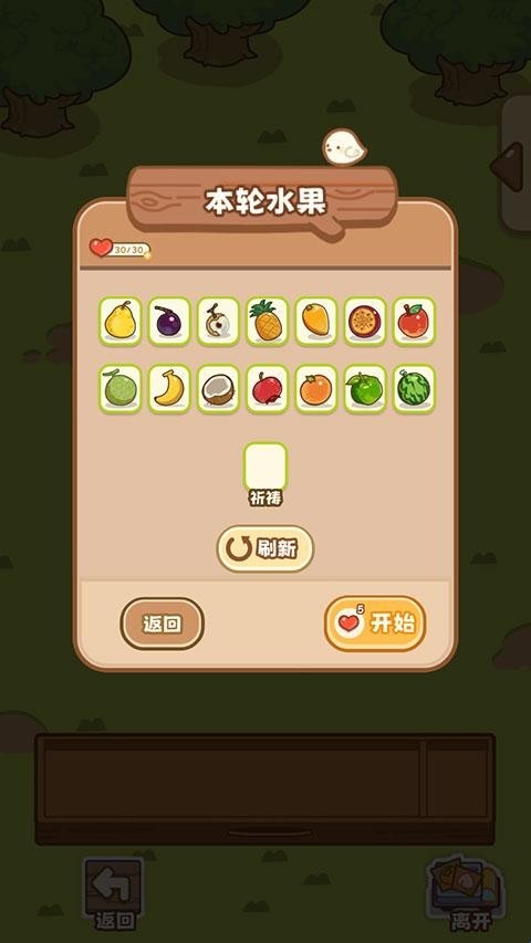 6、我们需要通过【小游戏】的方式来补充水果,游戏规则和羊了个羊类似,收集满3张相同的水果卡片即可完成消除和收集。