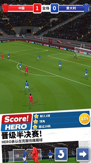 score hero,一款玩法多样的体育竞技游戏,游戏内你将扮演一名足球运动员,与对手进行激情碰撞,打造自己的传奇故事。玩家需要不断学习进球技巧,在一次次训练中完成精彩进球。带领你的球队打进国家队,冲击世界球队。游戏有着600多个关卡等待你来挑战。