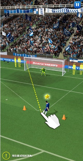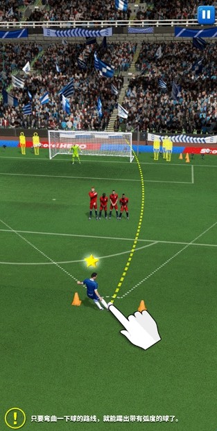 1、一个任意球的模拟场景,你就需要通过周密的计算和倒球,让皮球尽可能地接近对方的禁区。
