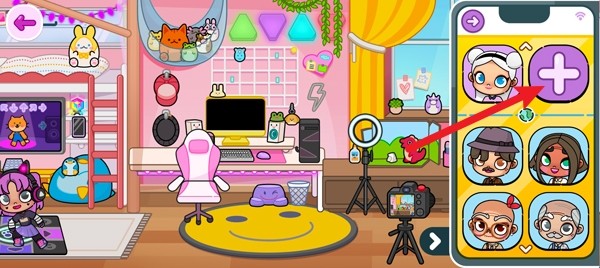 1、进入游戏后,点击右下角的手机按钮,接着选择角色头像旁边的“+”。