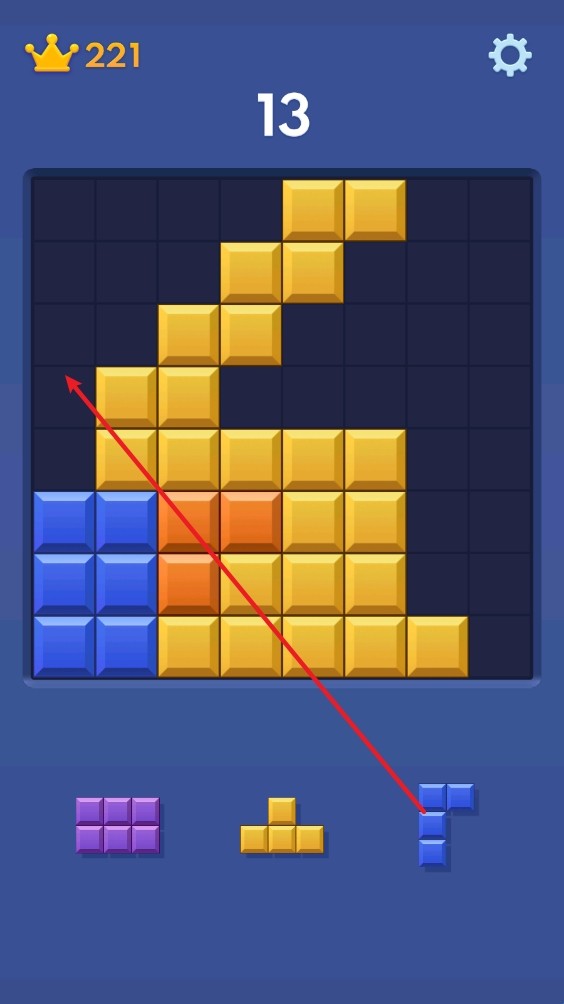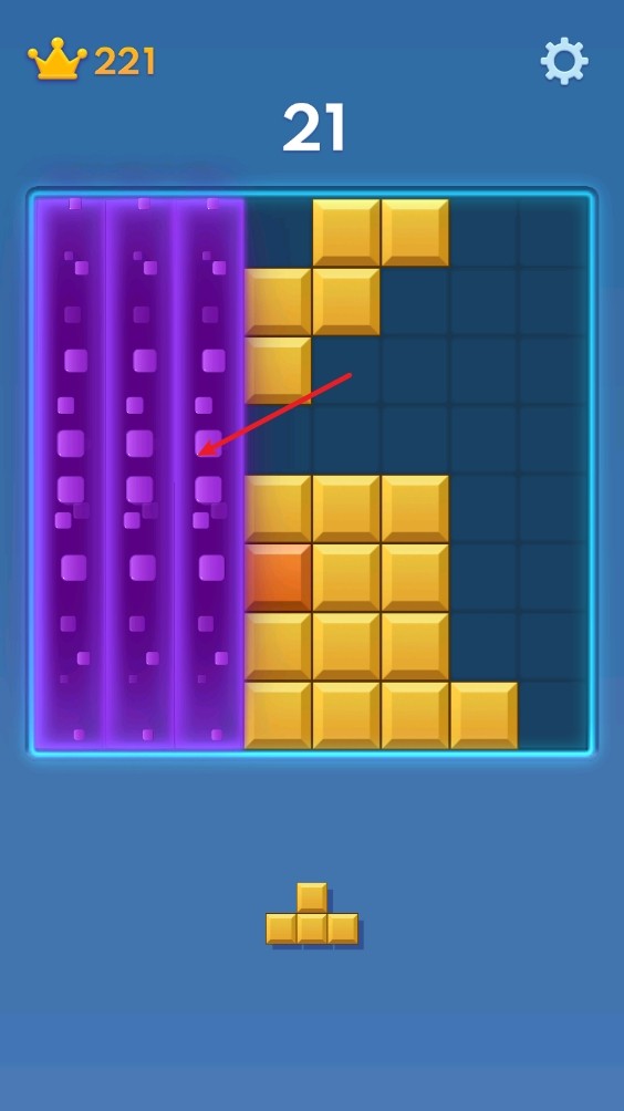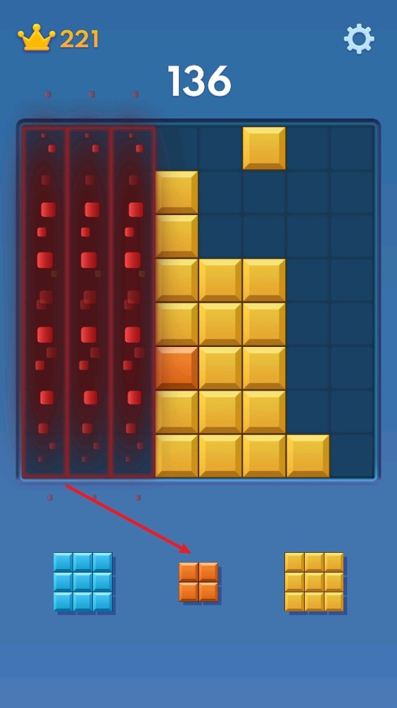 1、游戏在下方会提供三种随机的方块,将其放入合适的位置即可。